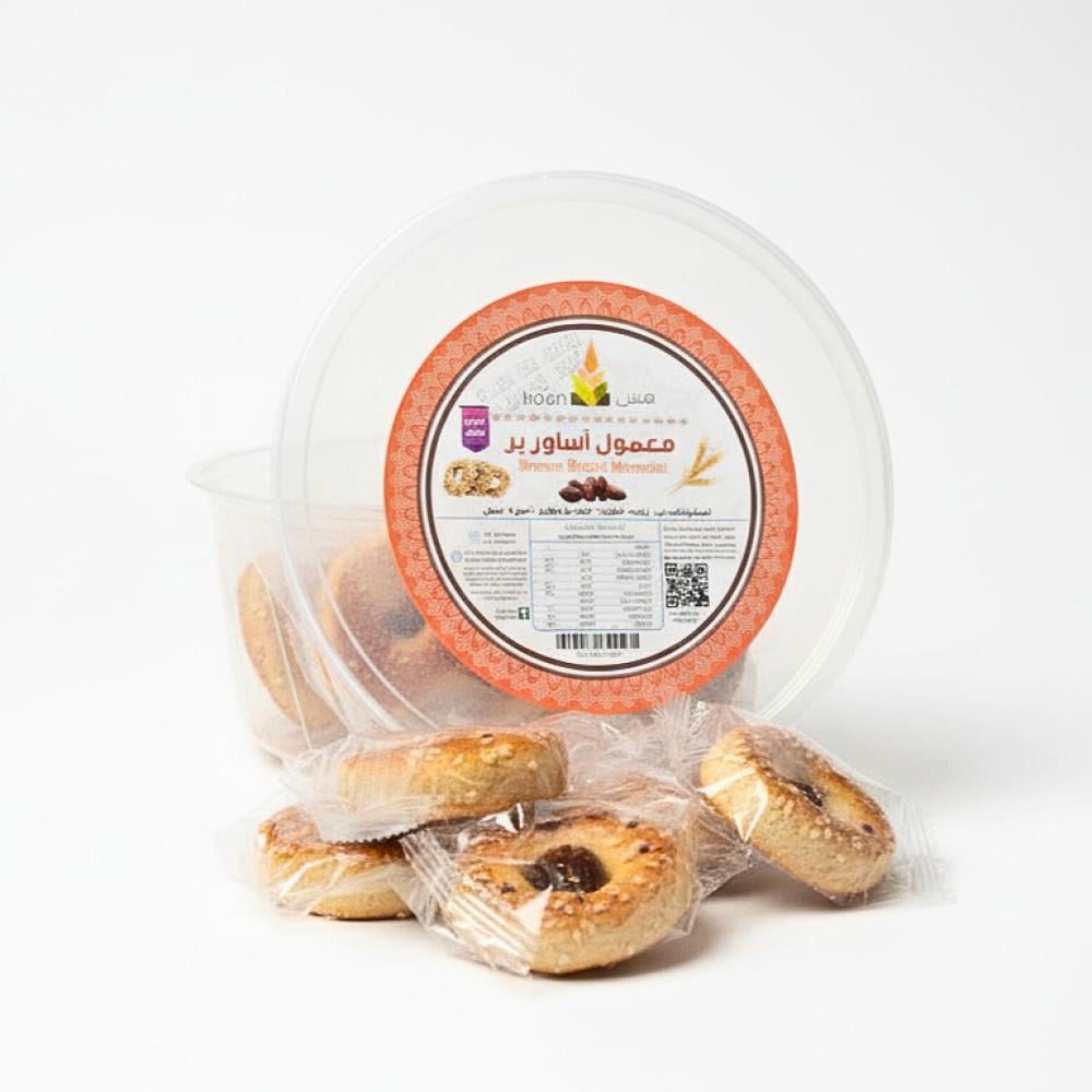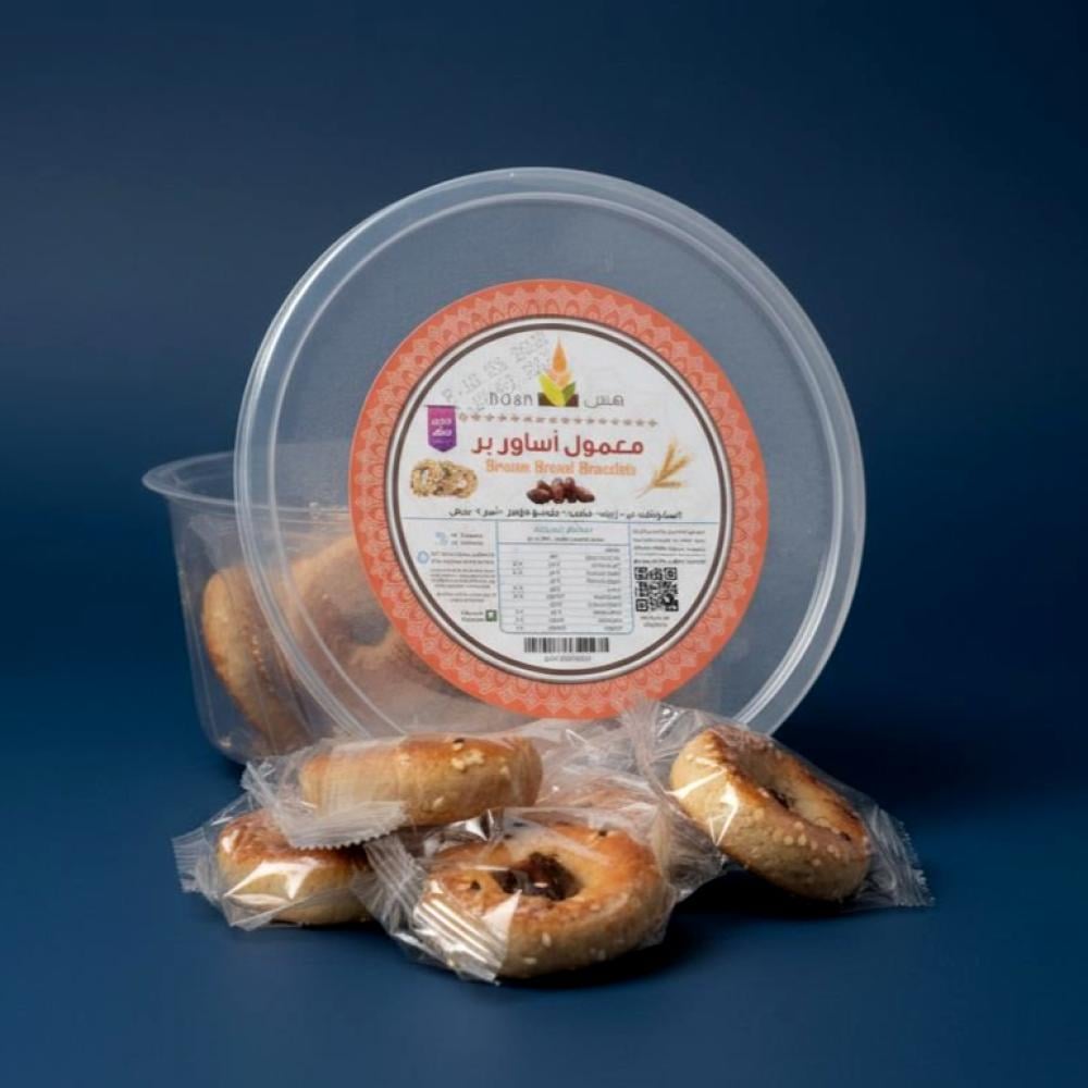 معمول أساور البر حلوى لذيذة وفاخرة مصنوعة من دقيق البر الكامل الغني بالألياف والمعادن، يتم حشوها بتمر طبيعي ، مما يضفي عليها طعماً حلوًا وغنيًا. تأتي الحلوى بشكل مبتكر يشبه الأساور، مما يجعلها سهلة التناول ومثالية لجميع المناسبات.